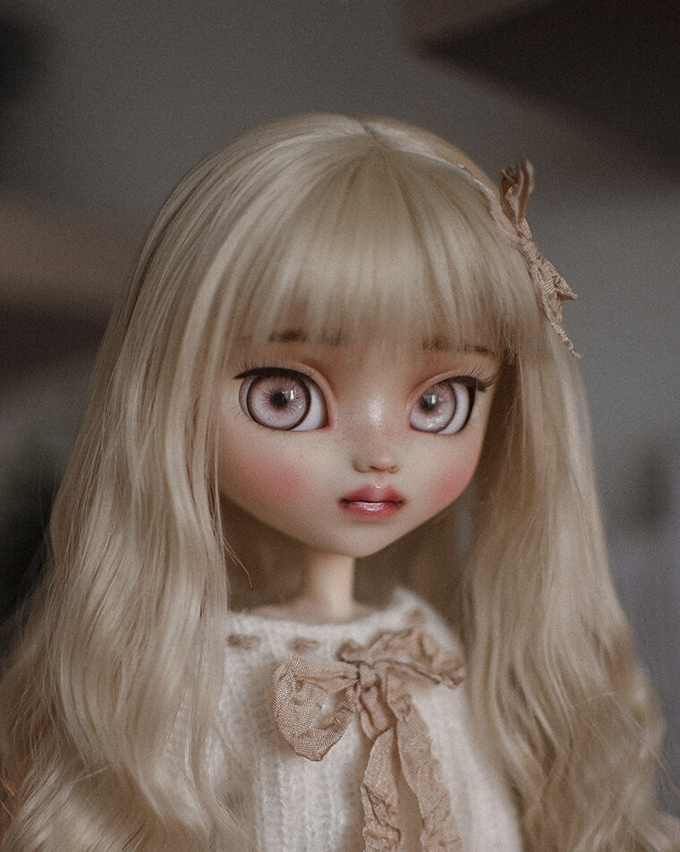 home shop tutorials about X ADOPTED Blythe Marshie While creating her, I was inspired by Valentine’s Day elegance, delicate ribbons and bows, and the sweet softness of a marshmallow. Meet Marshie♡ who is a customized Blythe doll with TBL/factory base (normal skin color). Marshie has:• carved mouth, philtrum, and nose• gaze correction & boggled eyes•… Continue reading Marshie