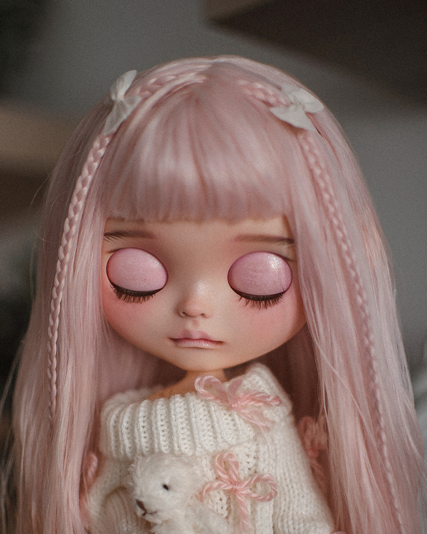 home shop tutorials about X ADOPTED Blythe Marshie While creating her, I was inspired by Valentine’s Day elegance, delicate ribbons and bows, and the sweet softness of a marshmallow. Meet Marshie♡ who is a customized Blythe doll with TBL/factory base (normal skin color). Marshie has:• carved mouth, philtrum, and nose• gaze correction & boggled eyes•… Continue reading Marshie